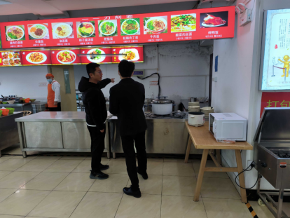 宣传组实地查看学校餐厅、超市、宿舍等场域安全设施规范管理使用情况并进行了消防安全宣传以及专业指导。宣传组来到餐厅,重点查看了餐厅操作间,对此次查看的结果整体给予肯定,并针对油污问题提出整改措施和消防安全知识的宣传。宣传组专门对学校的宿舍进行了全面而细致的查看,针对查看中发现的宿舍插排使用不规范问题给出专业指导措施以及消防安全知识的宣传。